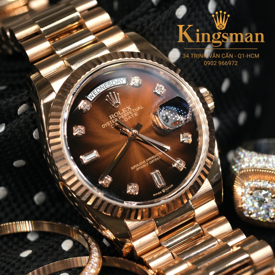 ROLEX DAY-DATE CHOCOLATE OMBRE 36 MM 128235 VÀNG KHỐI