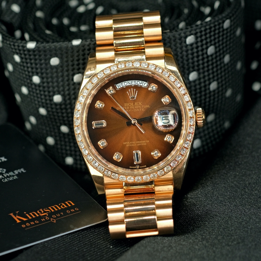 ROLEX DAY-DATE CHOCOLATE OMBRE 36 MM 128345 VÀNG KHỐI