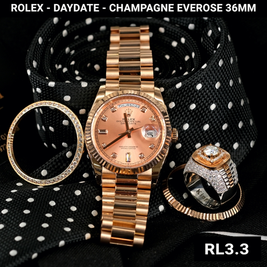ROLEX DAY-DATE CHAMPAGNE EVEROSE 36 MM 128235 VÀNG KHỐI